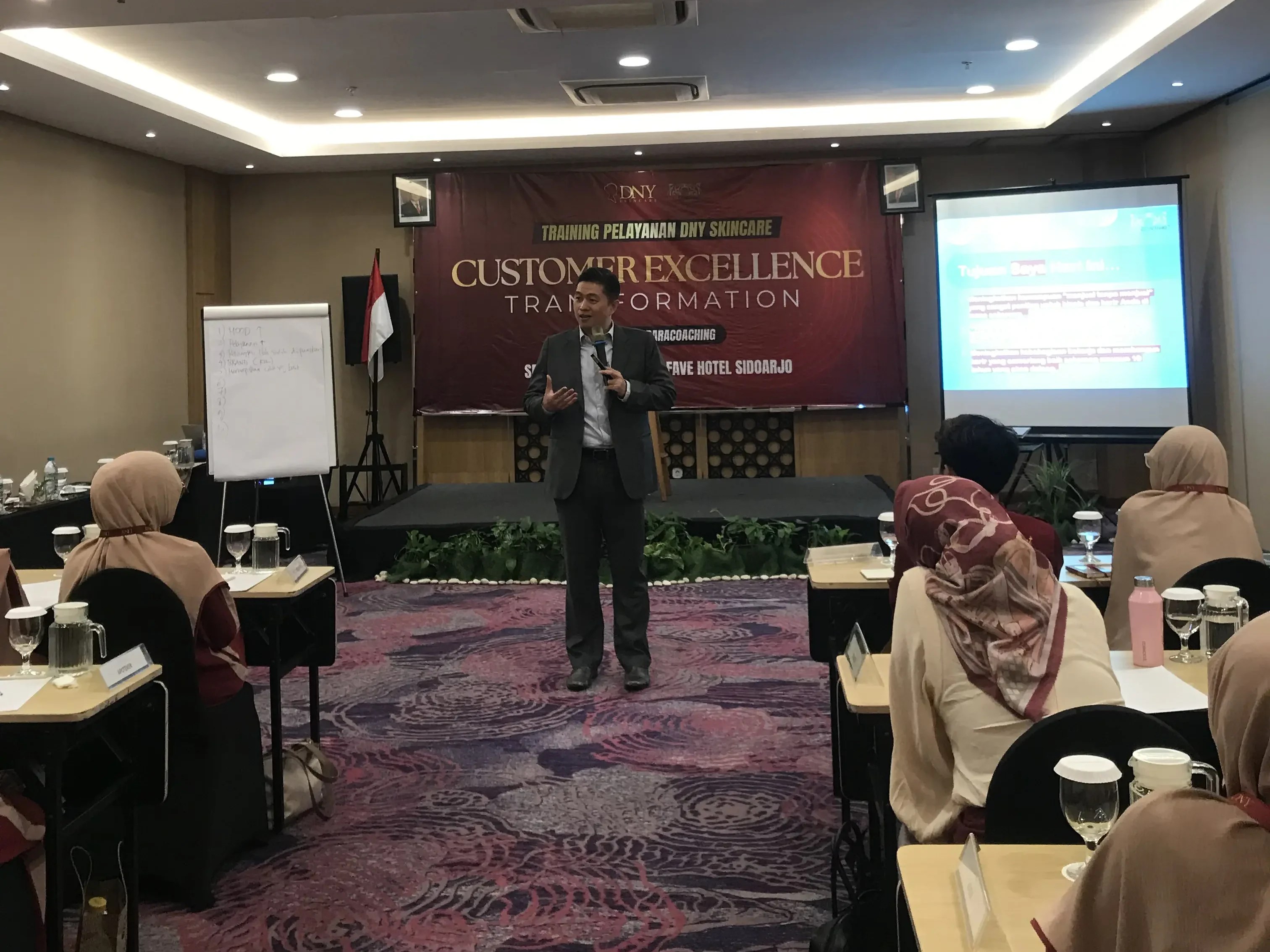 Training Customer Excellence untuk para staff klinik kecantikan ini diadakan di Fave Hotel Sidoarjo pada tanggal 13 Mei 2025. Training ini diikuti oleh fronliner, marketing, kepala klinik hingga dokter yang bertugas. Tujuannya, agar klinik bisa memberikan pelayanan yang terbaik bagi para customer.